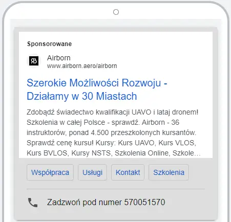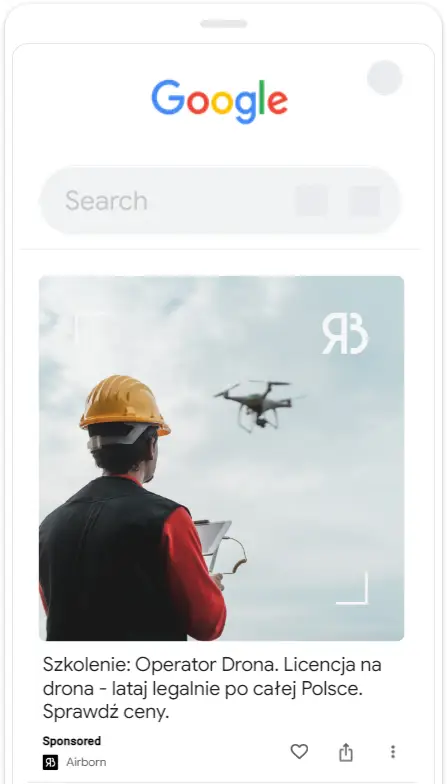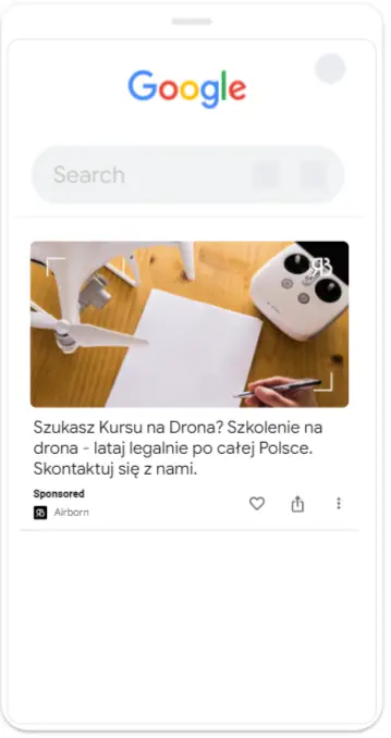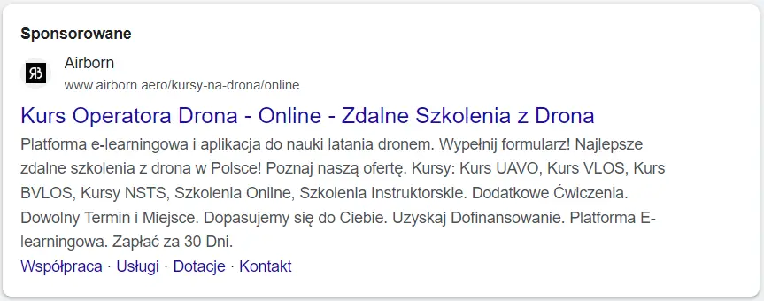 - w wyszukiwarce – czyli w momencie, gdy użytkownik szuka szkoleń i kursów na drona,